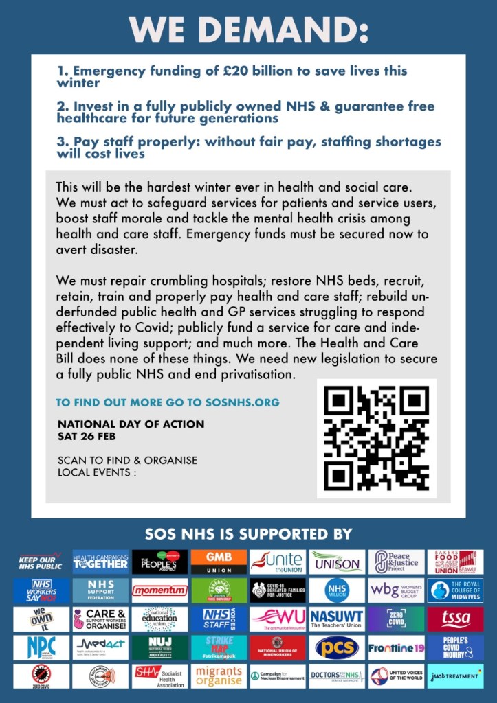 On Saturday 26th February, there will be a national day of action in support of the NHS. Please join us to stand up for our fantastic, publicly owned and run, health service. Details are below, and a national leaflet is attached.