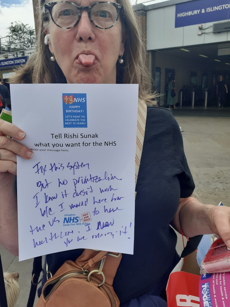Islington Keep Our NHS Public celebrated 75 years of the NHS on Saturday 1 July, 202 with stalls at the Angel, Highbury&Islington and the Nags Head.