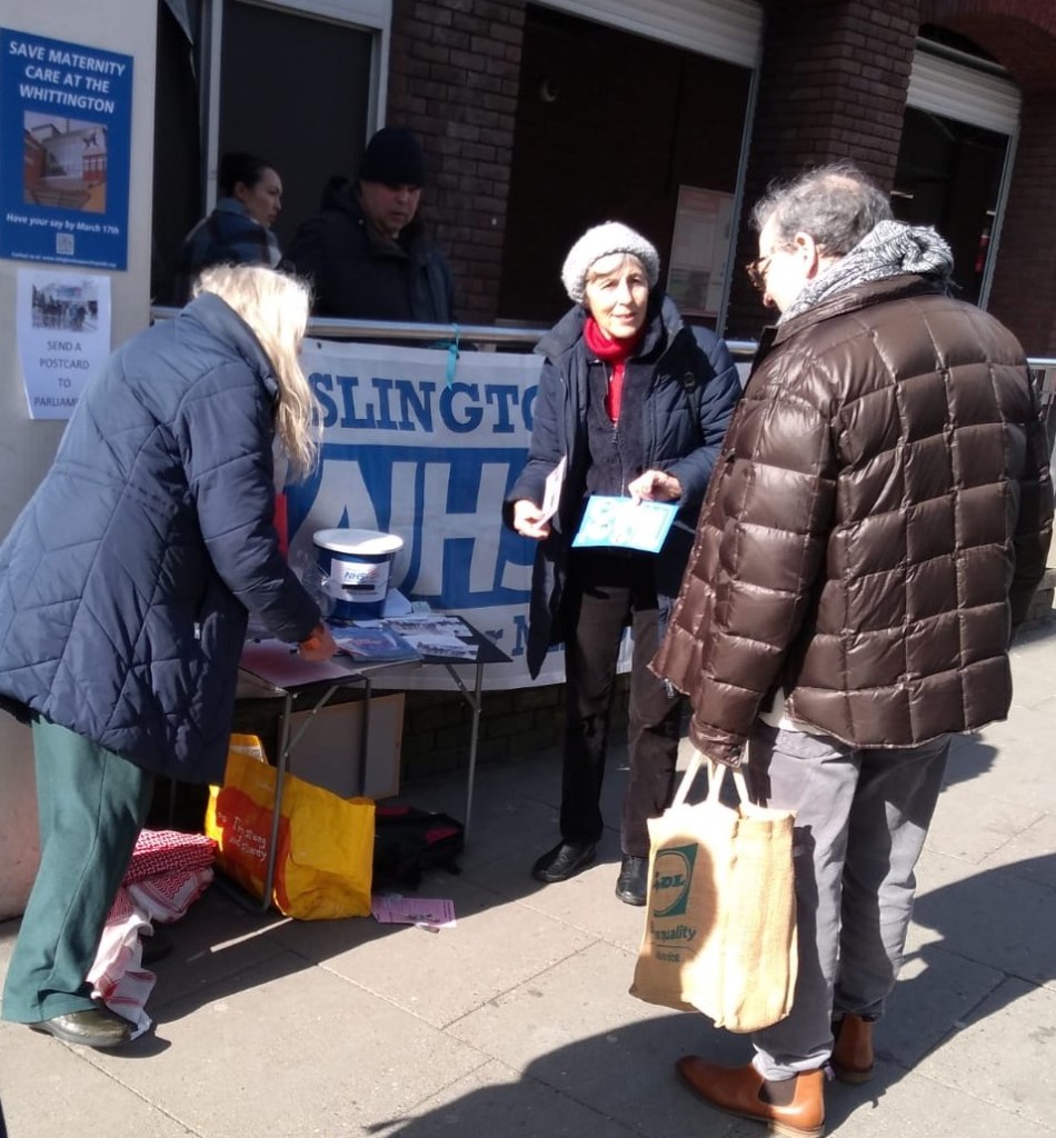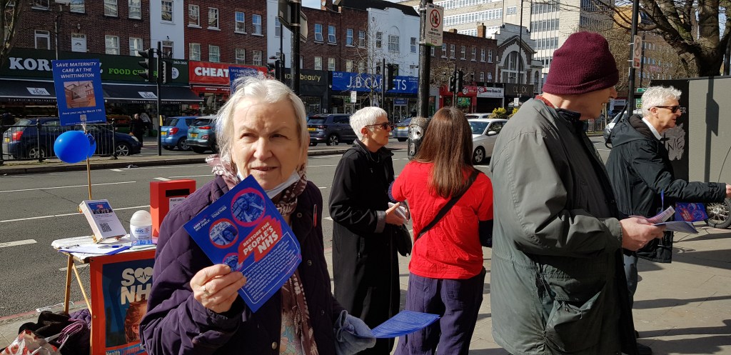 Islington residents sent over 100 responses to the North Central London Integrated Care Board protesting the planned closure of the maternity unit at either the Whittington or the Royal Free on Saturday, 9 March 2024. They also sent postcards to a range of MPs, asking them to pledge to restore our people’s NHS. It was all part of the Day of Action called by our national organisation, Keep Our NHS Public.