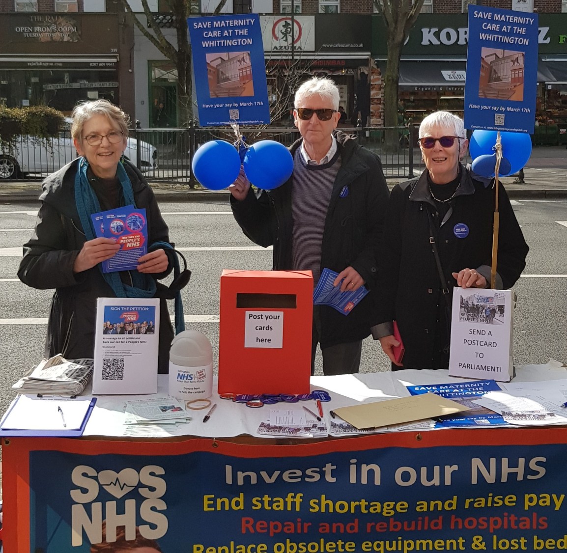 Islington residents sent over 100 responses to the North Central London Integrated Care Board protesting the planned closure of the maternity unit at either the Whittington or the Royal Free on Saturday, 9 March 2024. They also sent postcards to a range of MPs, asking them to pledge to restore our people’s NHS. It was all part of the Day of Action called by our national organisation, Keep Our NHS Public.